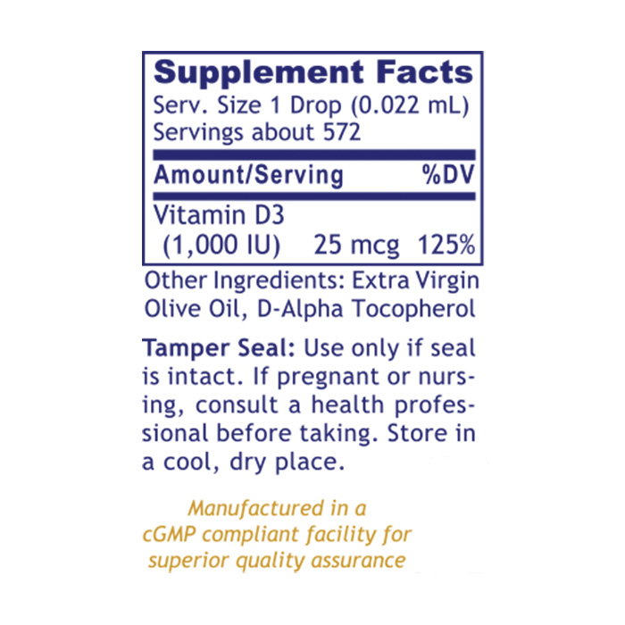 Adults or children age 4 and above: Take 1 drop daily with meals. If you are taking more than 2000 IU/day, it is recommended to have your blood levels monitored. If you are pregnant or lactating, consult a physician before use.