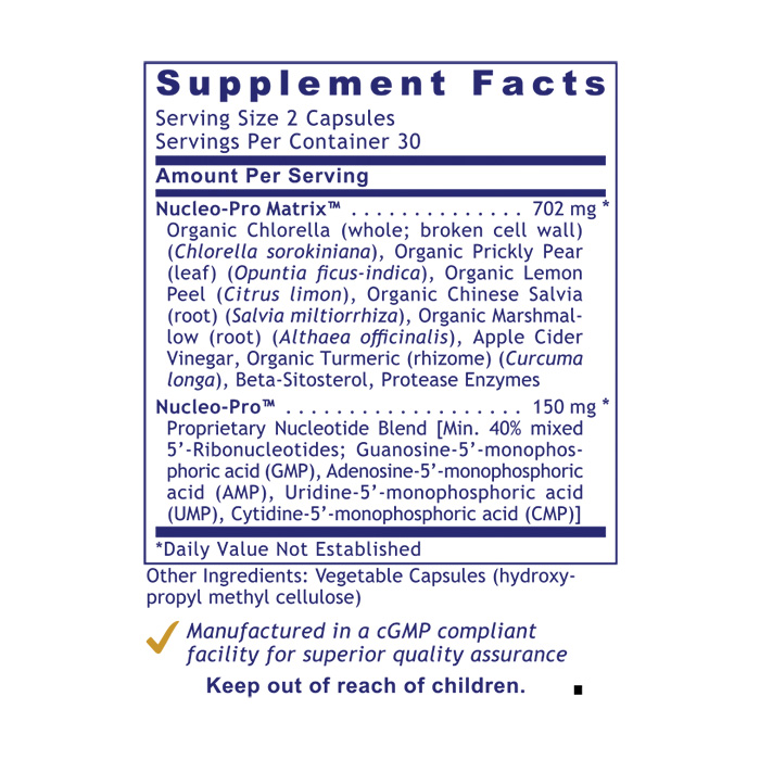 This formula also includes Nucleo-Pro Matrix™, a full spectrum support blend that supplies a broad range of biocompatible botanical agents that offers a complex phytochemical profile for additional nutritional support.