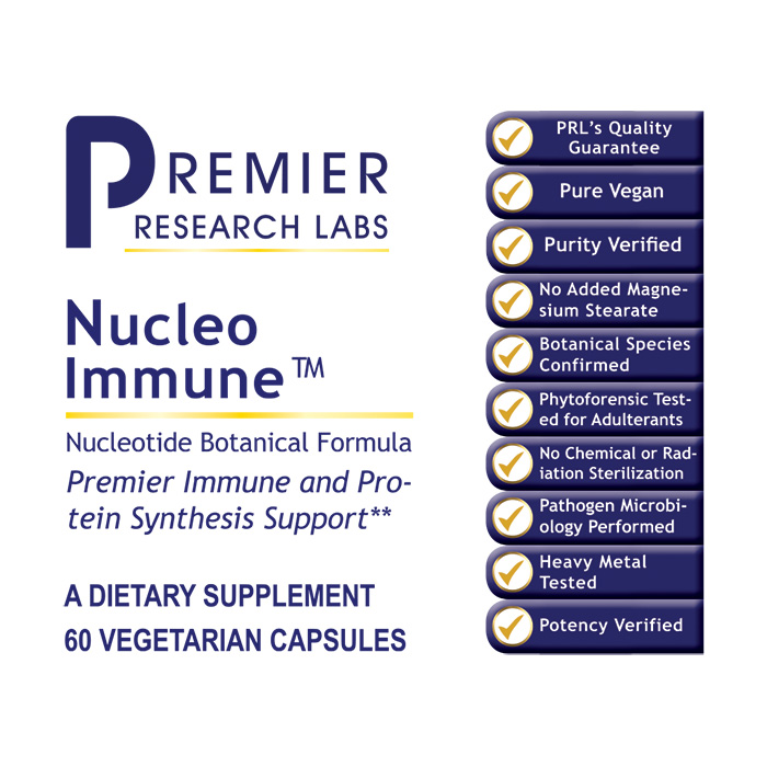 Premier Nucleo Immune™ promotes protein synthesis, cellular vitality, beneficial intestinal flora and immune system health.
