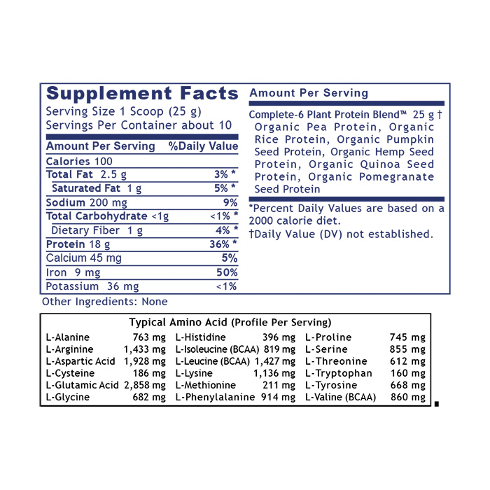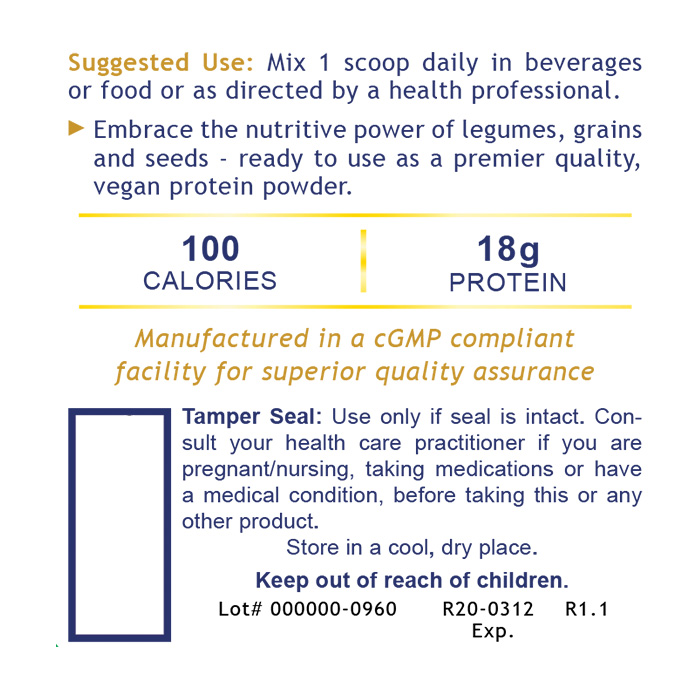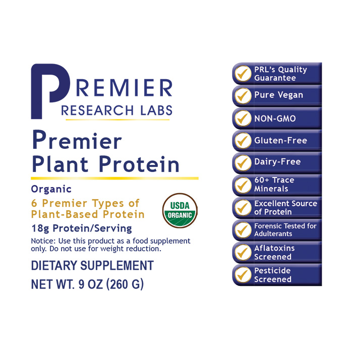 Premier Plant Protein liberates the nutritive power of high quality, living seeds, grains and legumes (pea) as a high quality, vegan protein powder. This product features six premier types of plant-based protein, including premier quality pea protein, rice protein, pumpkin seed protein, hemp seed protein, quinoa seed protein and pomegranate seed protein. Premier Plant Protein is an excellent source of complete protein, providing 18 grams, or 36% of the Daily Value, plus it has all of the essential amino acids naturally present in plant-based sources.