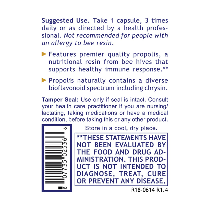Recommended Use. Take 1 capsule, 3 times daily. Not recommended for people with an allergy to bee resin.