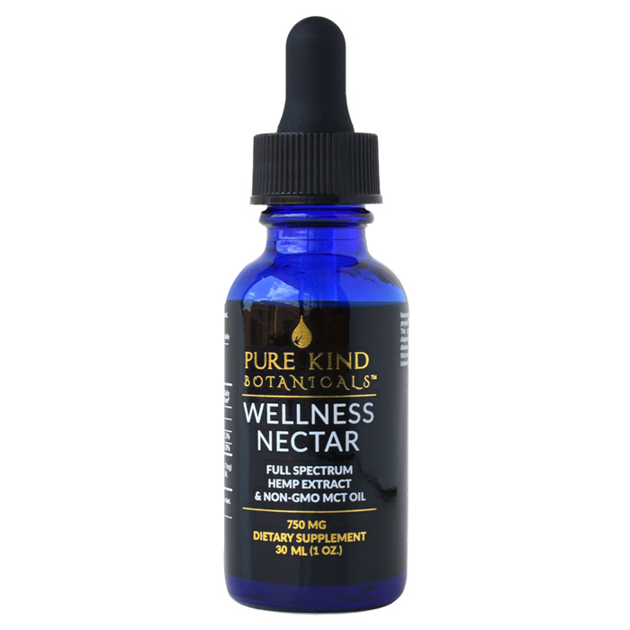 The 750mg Wellness Nectar tincture CBD Oil is the newest member of the Pure Kind Botanicals tincture family. It is just the right balance between effective wellness support and value as you take 5 drops (0.17mL) under the tongue in the morning and again at night if needed.